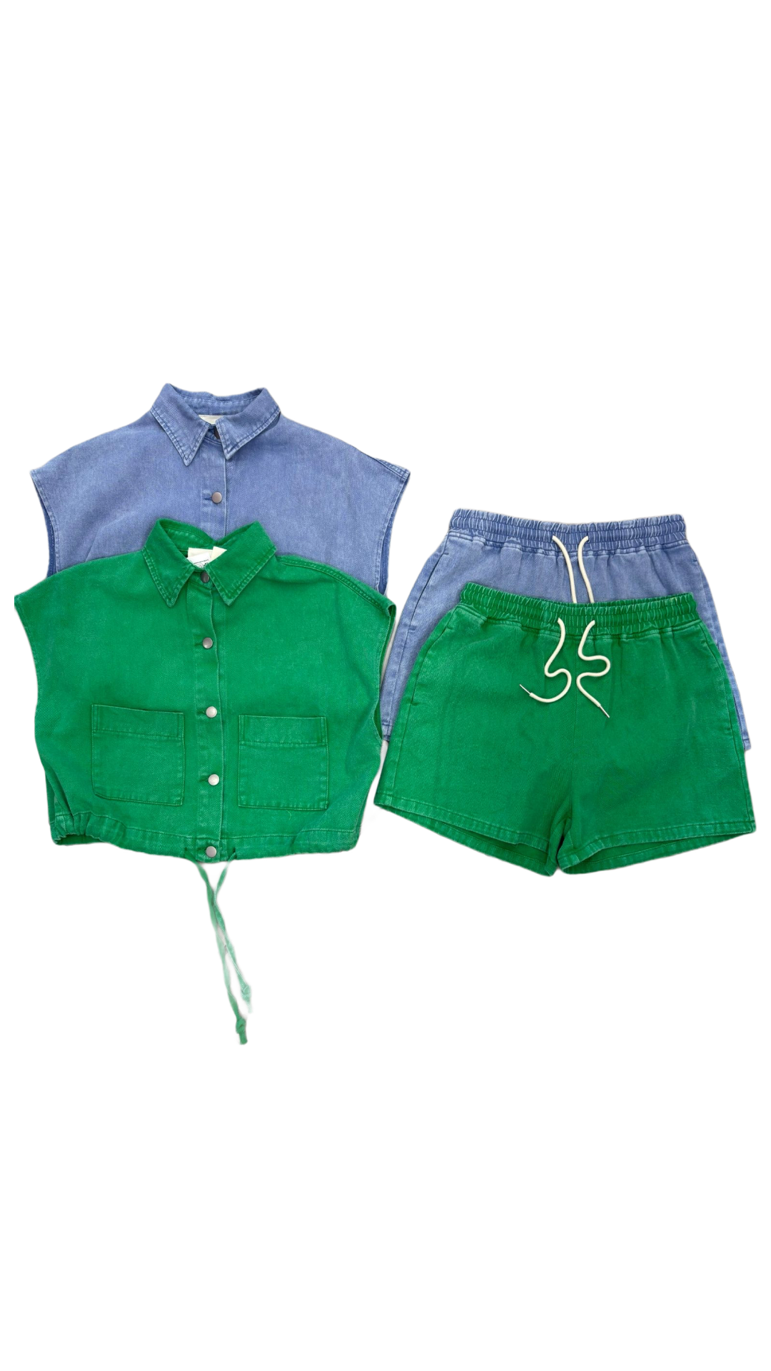 coordinato in Denim molto elasticizzato, un capo perfetto per unire comfort e tendenza. Questo modello si distingue per l'elevata elasticità del tessuto, garantendo una vestibilità impeccabile e una libertà di movimento senza pari. Il design include dettagli eleganti come bottoni di qualità e un pratico filo regolabile sulla vita, che permette di stringere il capo secondo le tue esigenze, assicurando una vestibilità personalizzata.