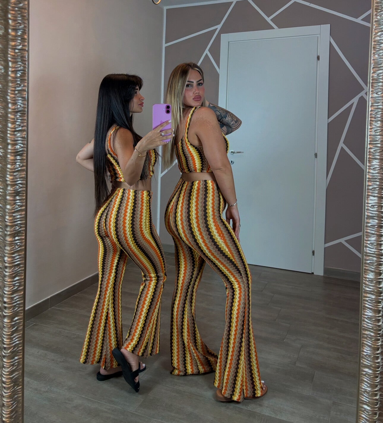 Il coordinato presenta top e pantalone il tessuto è elastico