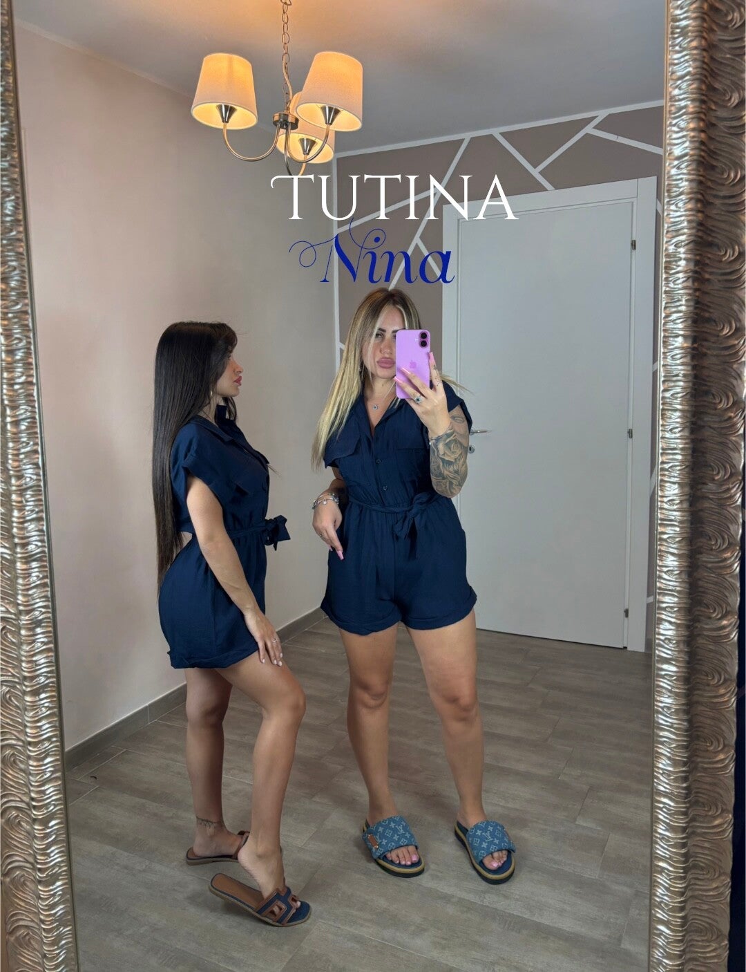 Tutina a manica corta con colletto, bottoncini frontali e tasche sul petto. Cintura in vita inclusa per valorizzare la silhouette e creare un fit regolabile.