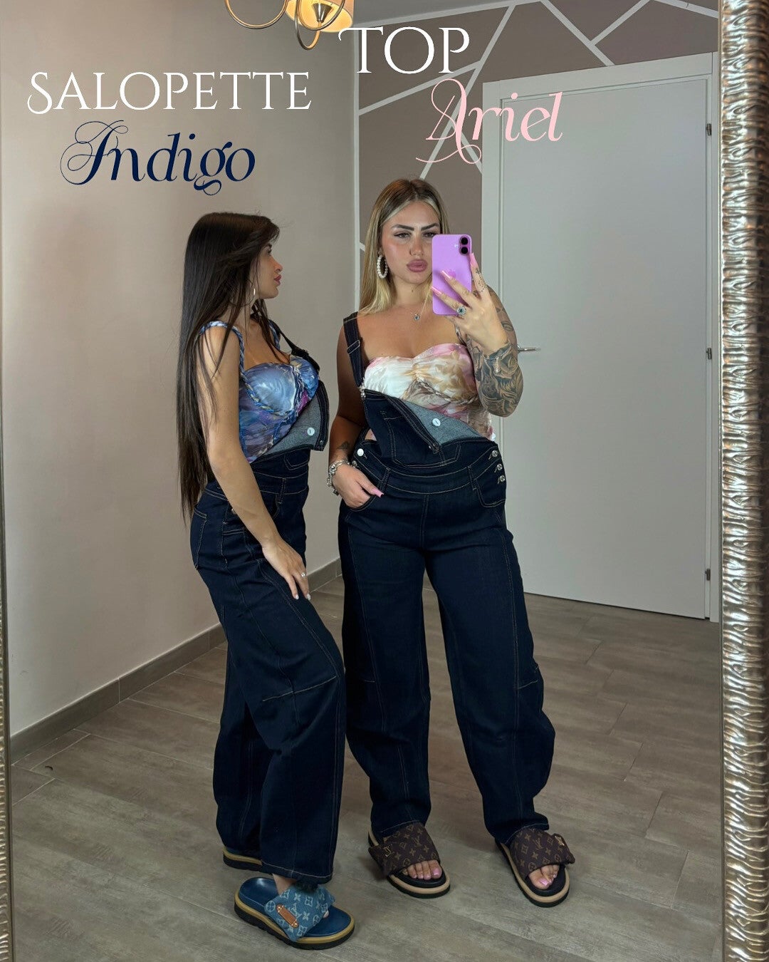 La salopette “Indigo” è il mix perfetto tra streetwear e femminilità. Realizzata in denim blu scuro, ha una linea morbida e wide leg con cuciture a contrasto che slanciano la figura. Tessuto elastico