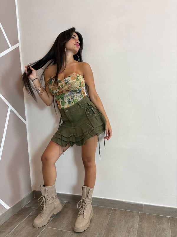 Corpetto taglia unica, presenta coppe ed elastico dietro taglia unica, calza da un XS fino a una L