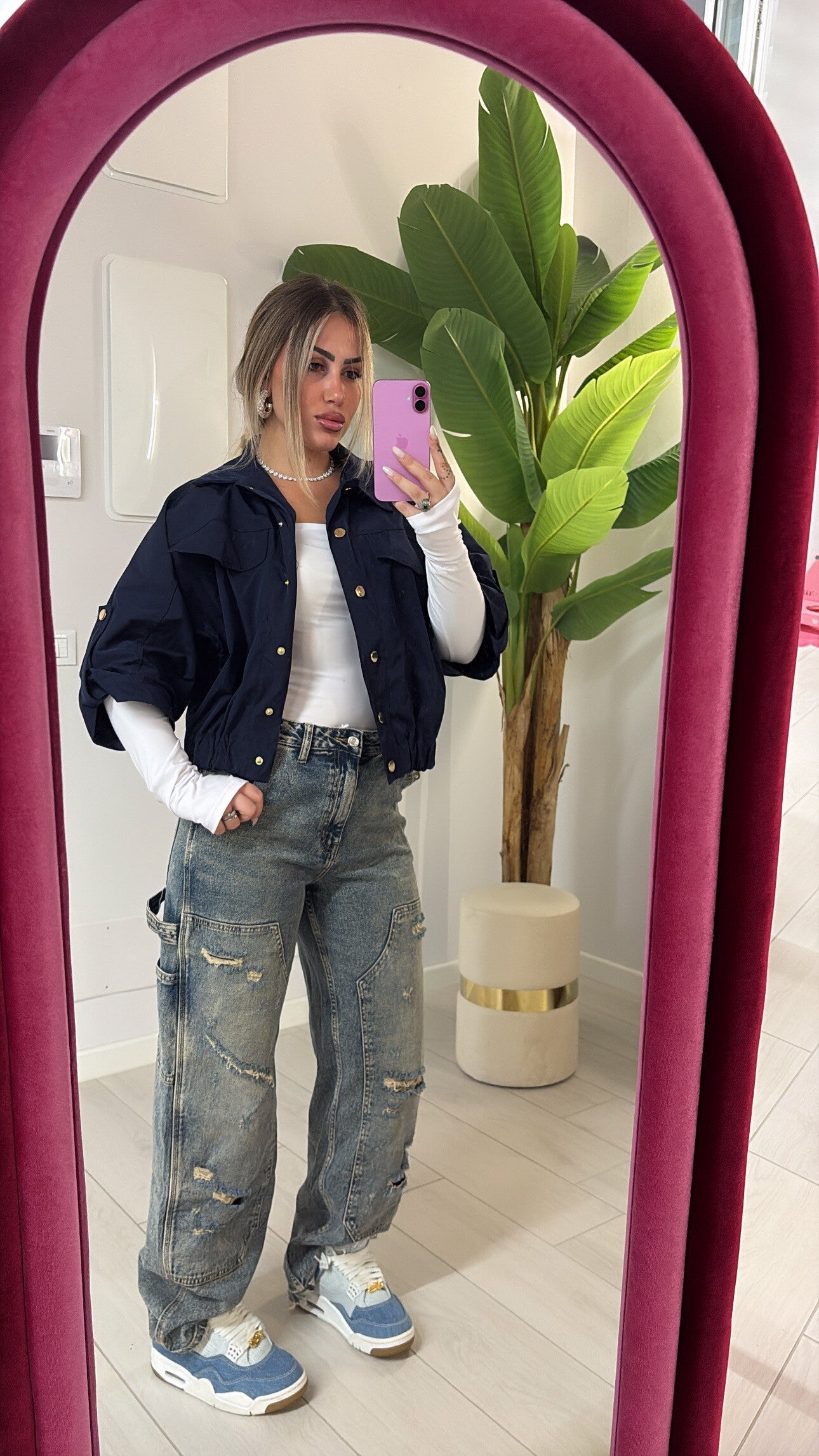 Jeans, tessuto Denim e elastico particolare per le sue tasche e strappi