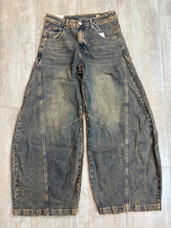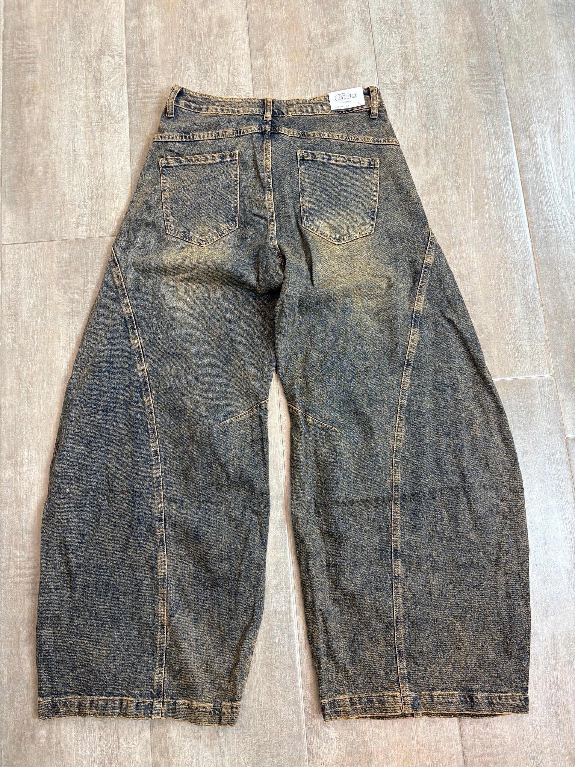 Jeans a palloncino a vita alta con lavaggio vintage effetto used. Linea ampia e morbida sulla gamba con cuciture laterali sagomate che donano un look unico e di carattere. Modello versatile, perfetto da abbinare sia a sneakers che a tacchi per uno stile streetwear ma sempre chic.