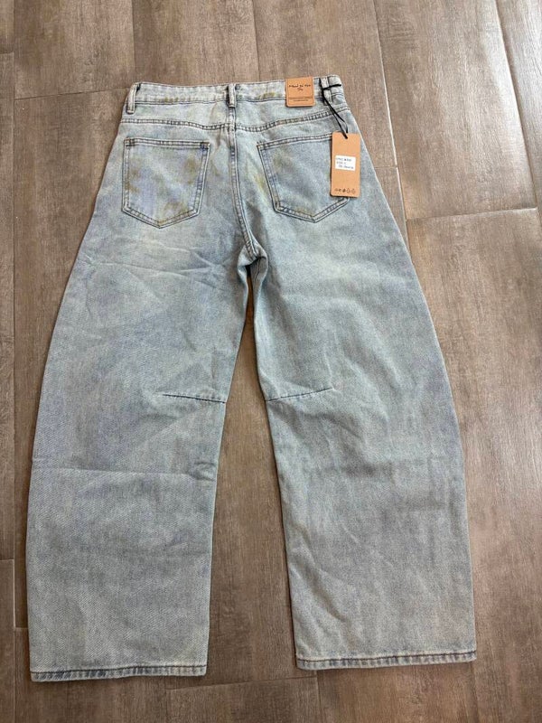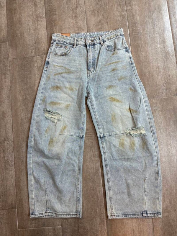 Jeans a palloncino in denim chiaro con lavaggio effetto vintage e dettagli destroyed sulle ginocchia. Vita alta, gamba ampia e relaxed fit per un look streetwear di tendenza. Perfetti da abbinare con crop top e sneakers per un outfit casual ma super cool.