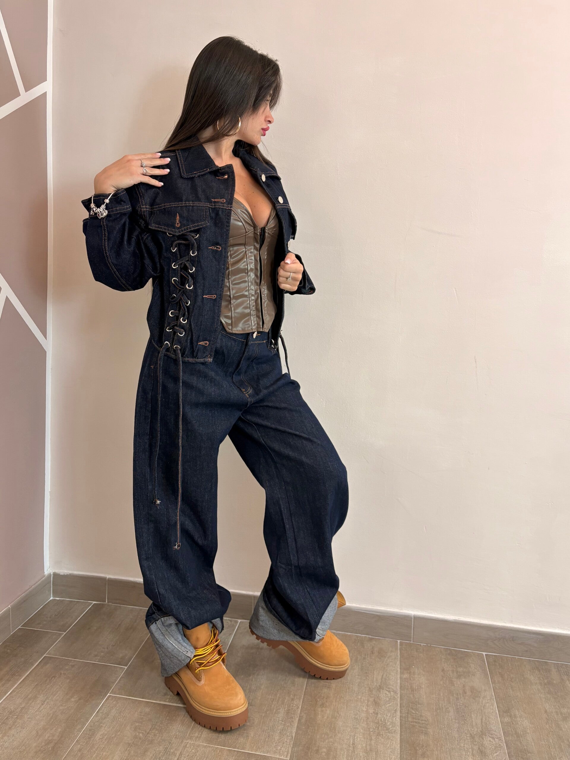 Giacca crop con dettagli a laccio laterale regolabile e chiusura frontale con bottoni,