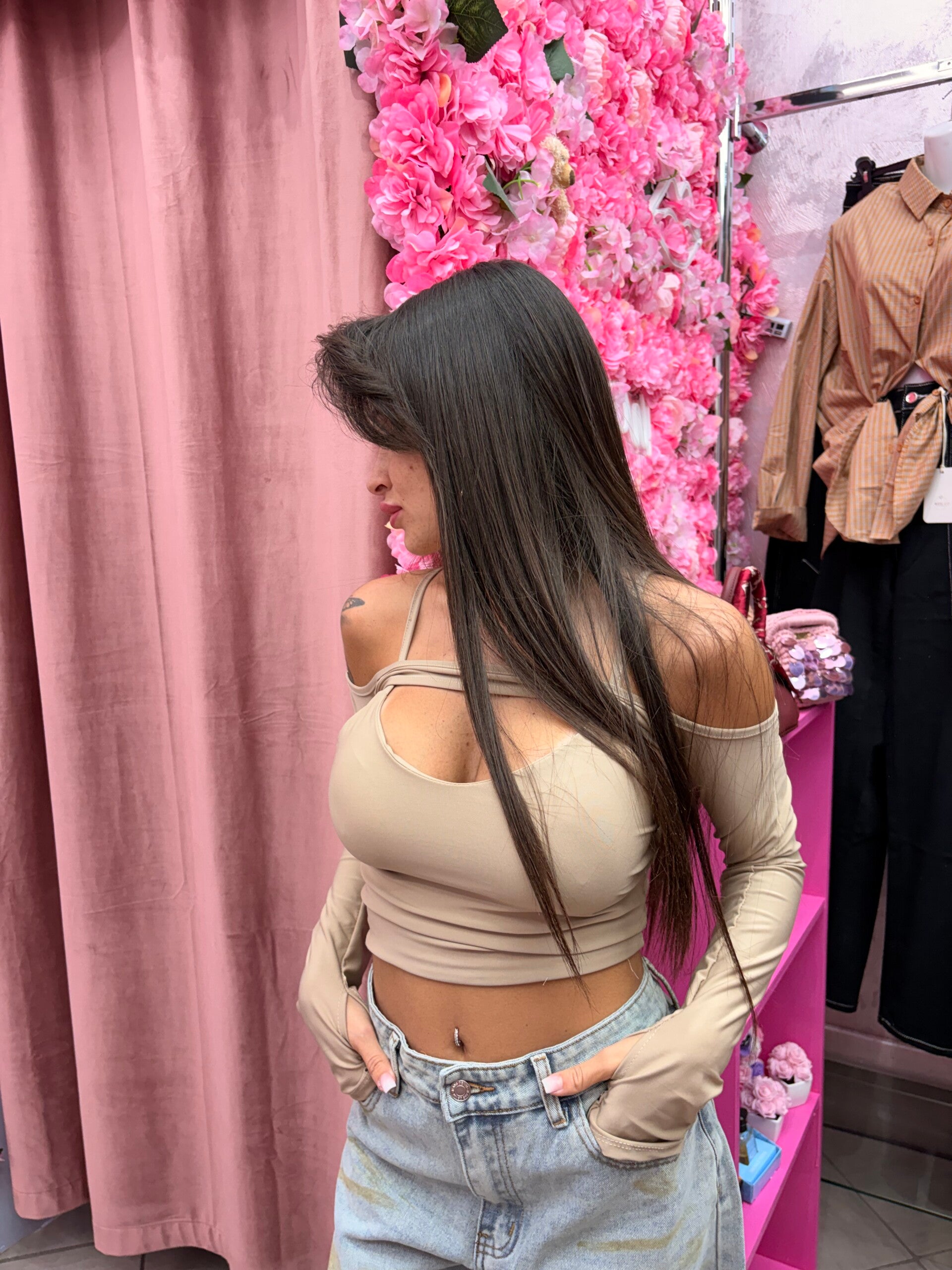 top con copri spalla removibile presenta coppe e veste da una XS a una XL