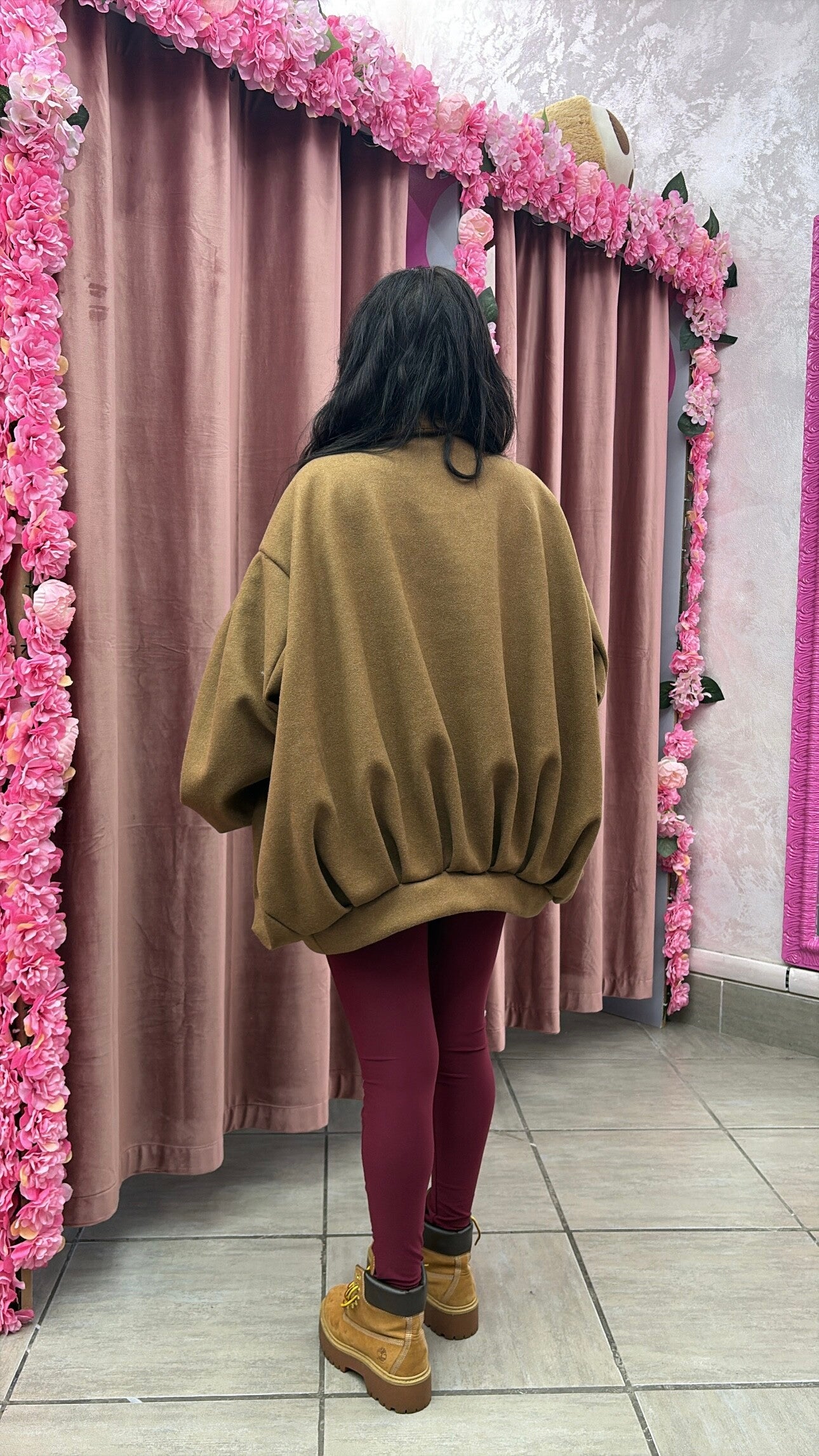 Giacca oversize dal taglio morbido con maniche balloon.