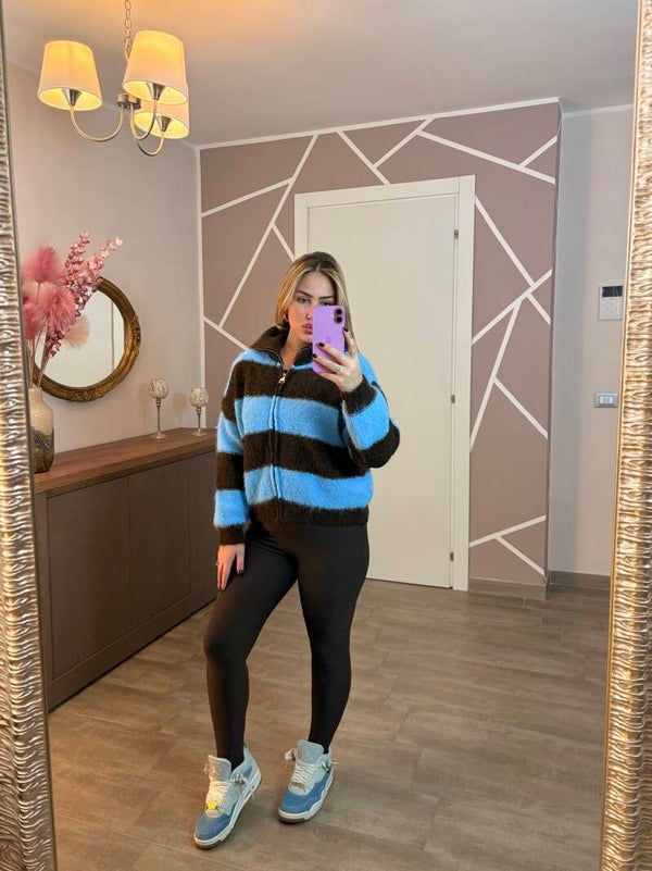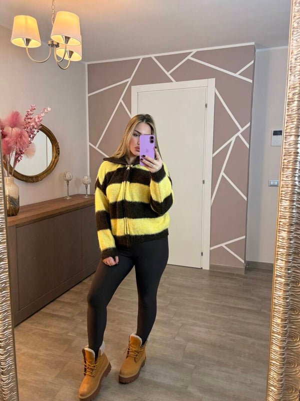 Pull effetto lana, taglia unica ma calza da xs a xl , presenta zip frontale