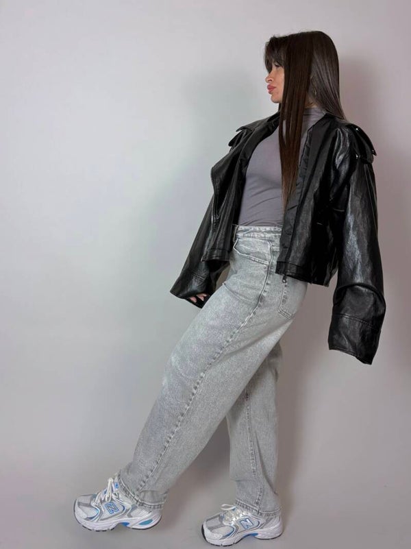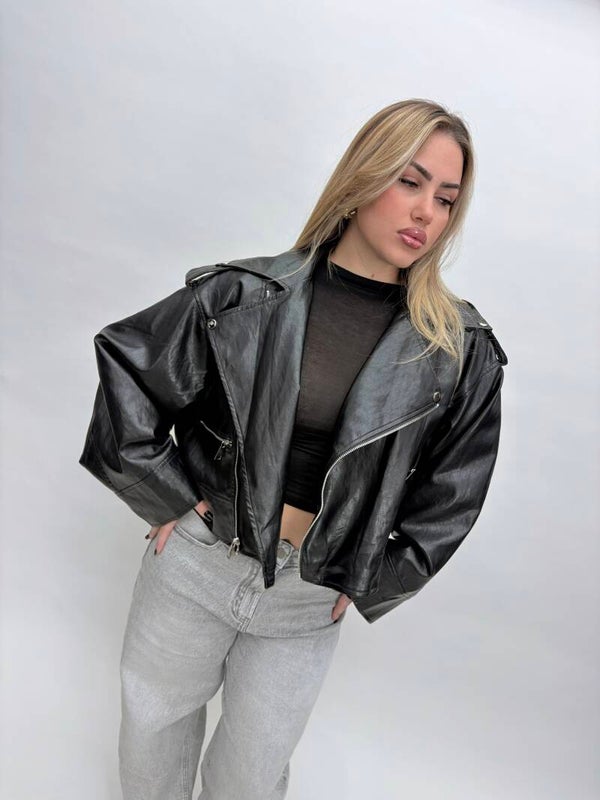 Giacca eco pelle in taglia unica, calza da xs a xl