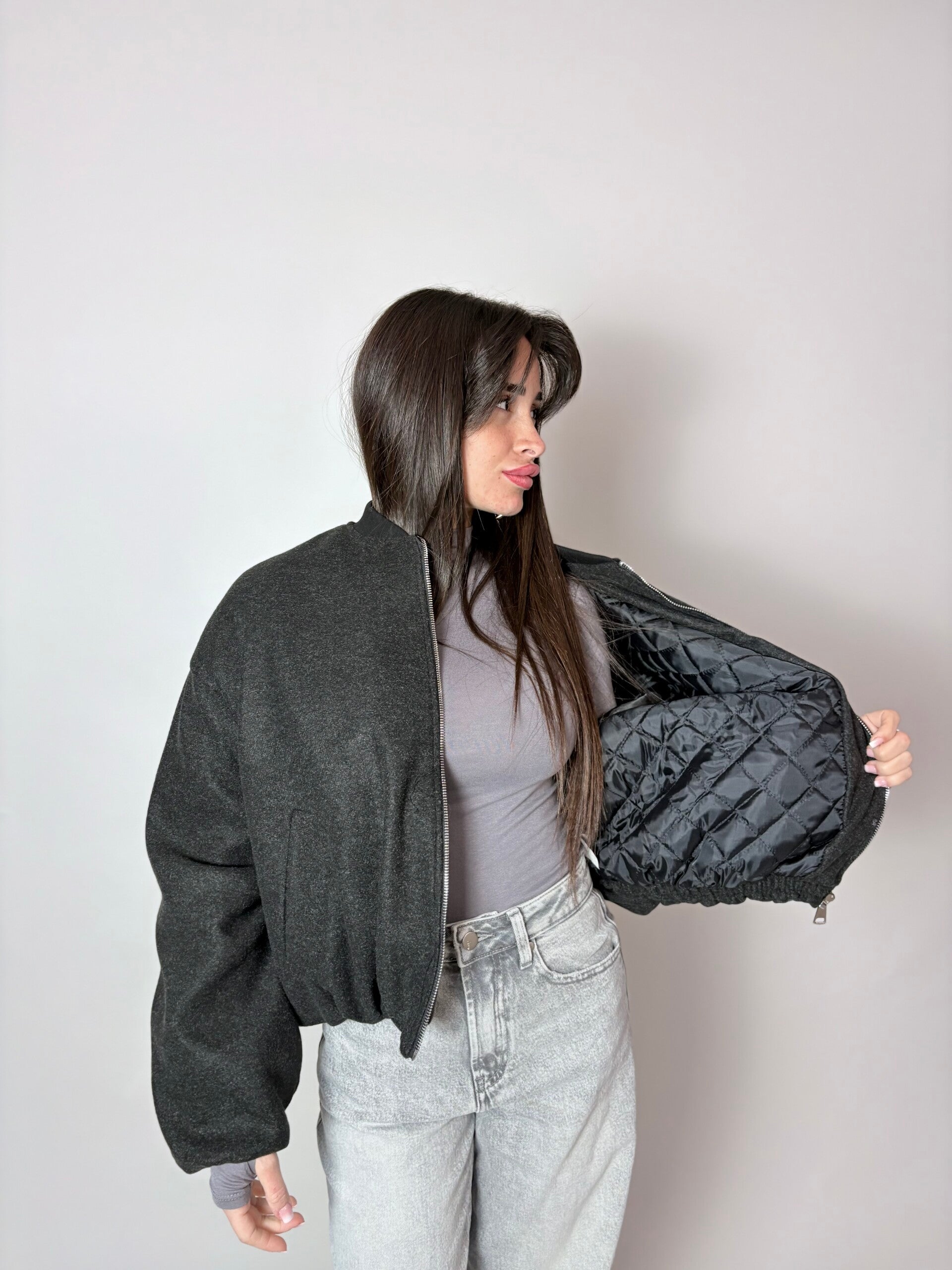 Bomber caldo e super morbido, con imbottitura interna trapuntata che mantiene il calore senza appesantire.
