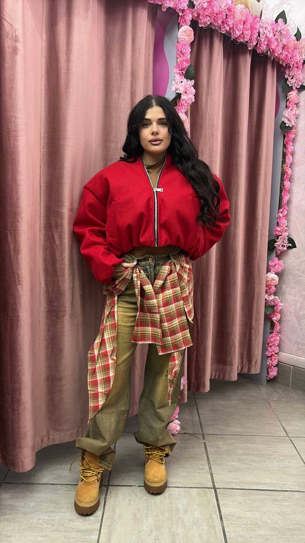 Jeans dal carattere urban e super versatile, impreziosito da camicia a quadri applicata in vita removibile e catenella decorativa anch’essa removibile.