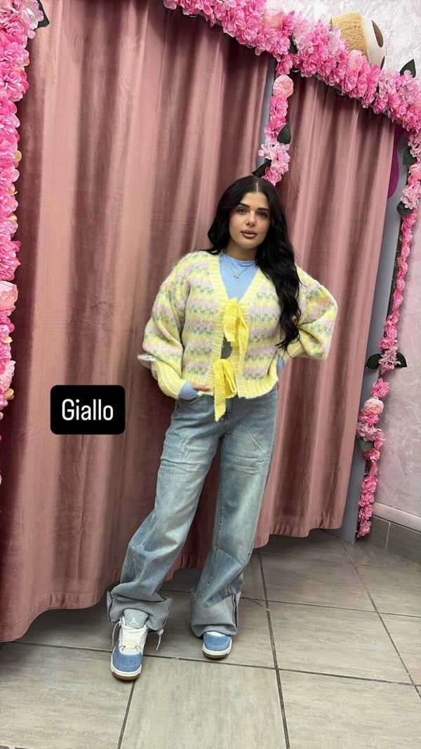 Maglioncino in maglia morbida dall'effetto soffice e avvolgente,presenta una vestibilità confortevole e un dettaglio di laccetti annodati che arricchiscono il design, è taglia unica ma calza da una xs a una xl.