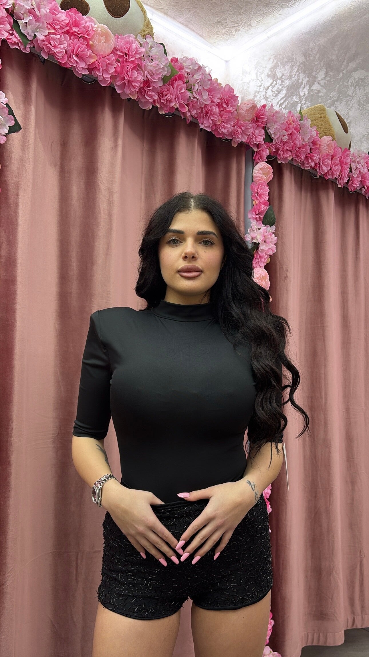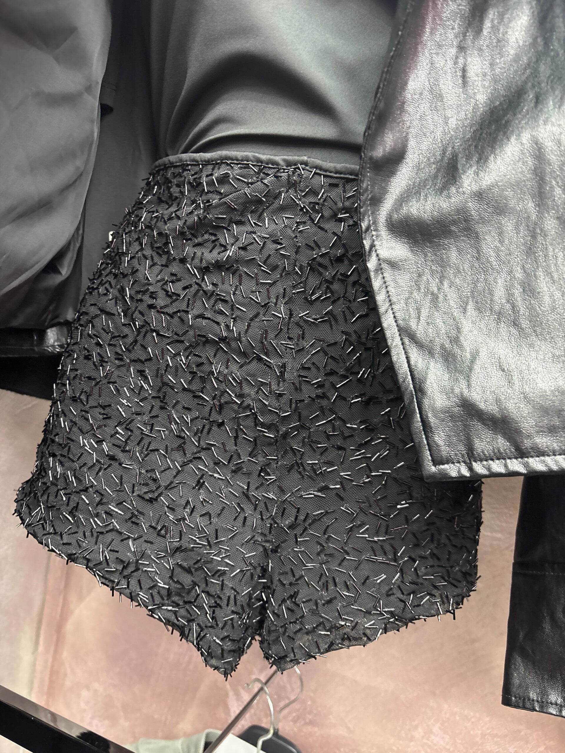Culotte nere dal design elegante e ricercato, impreziosite da micro applicazioni luminose che donano al capo un effetto brillante e sofisticato.