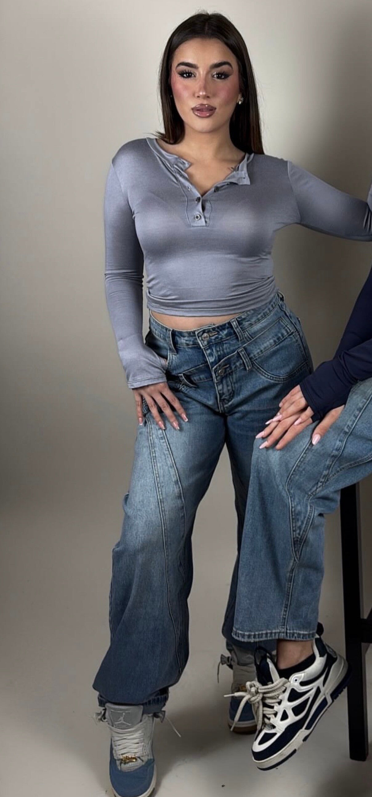 Maglia a manica lunga dal design essenziale e femminile, realizzata in tessuto elasticizzato e morbido al tatto che valorizza la silhouette. Il modello presenta uno scollo Henley con bottoncini frontali tono su tono, perfetto per regolare l’apertura e dare un tocco casual-chic.