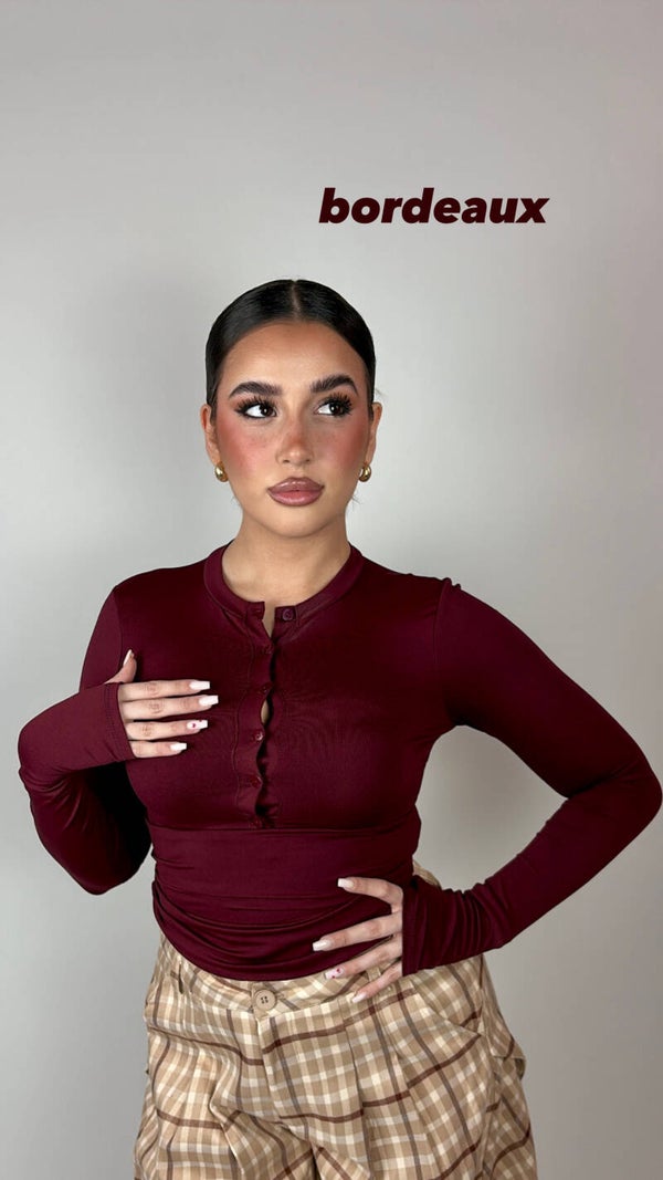 Maglia dal design essenziale e versatile, impreziosita da delicati bottoncini frontali che aggiungono un tocco femminile e raffinato.