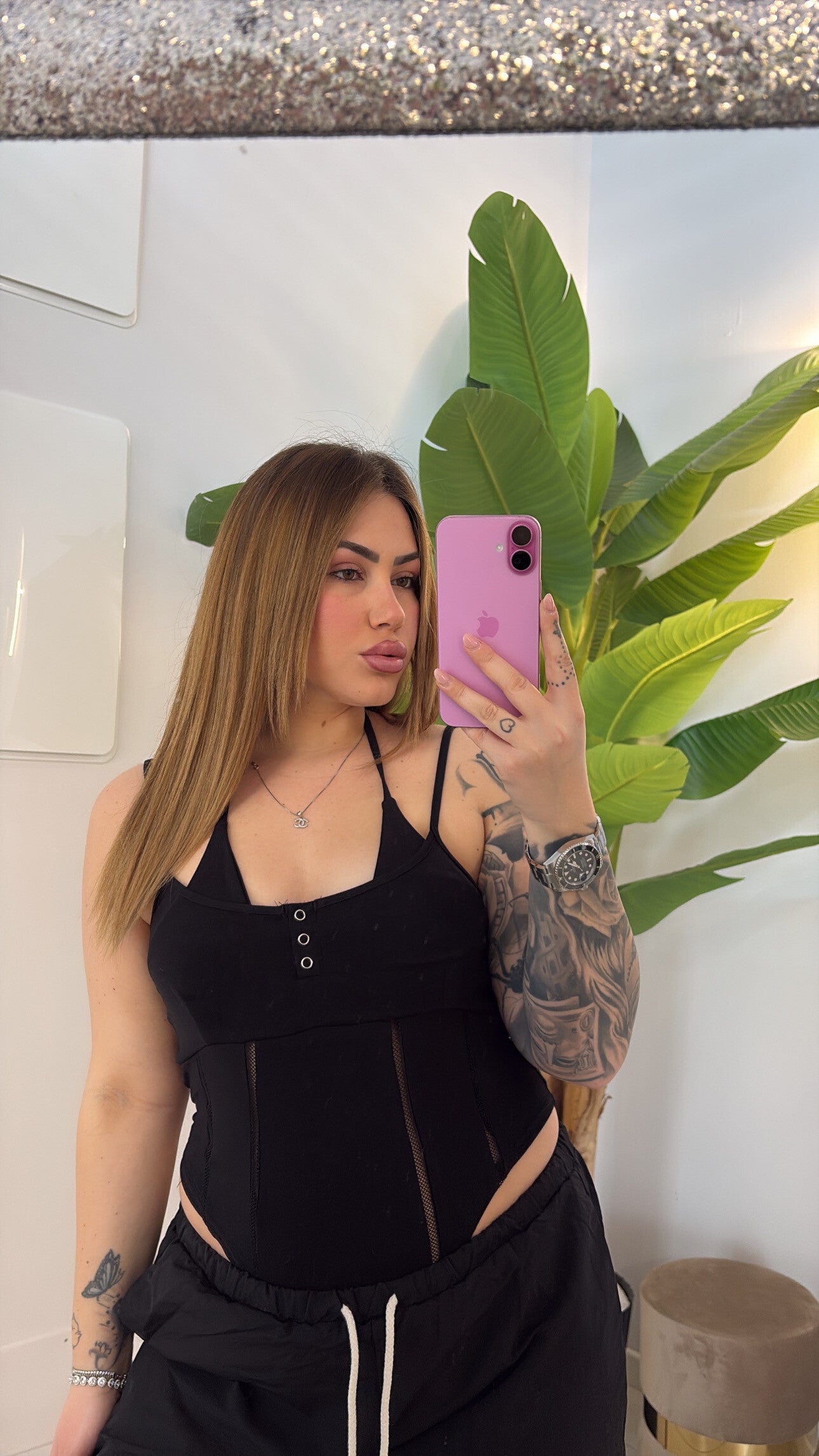 Set grintoso e super trendy composto da top aderente con dettagli cut-out e pantalone cargo morbido con coulisse ✨