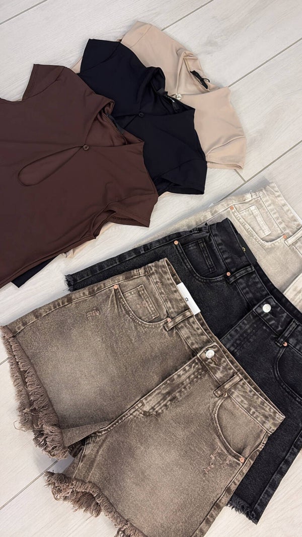 Short dal design moderno e femminile, caratterizzato da un originale taglio che dona movimento e stile al look. Il tessuto morbido e leggermente slavato esaltà l'abbronzatura ed è perfetto per la stagione estiva. L'orlo sfrangiato aggiunge un tocco casual e di tendenza. La vita valorizza la silhouette garantendo comfort e vestibilità.